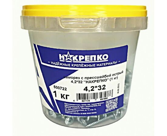Название 1-2.Sale: Саморез с прессшайбой острый 4,2*32 (ведро 1кг, цена за ведро) НАКРЕПКО 600722