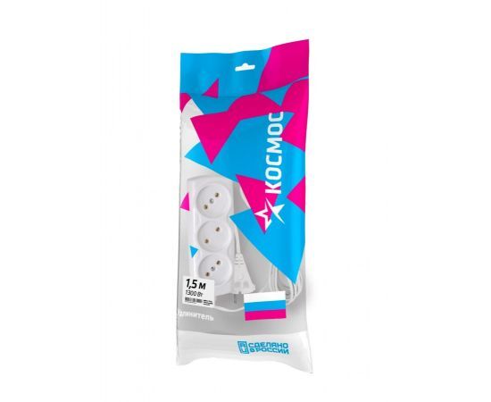 Название 1-2.Sale: Космос сет. удлинитель ШВВП 2х0.75 3роз. 1.5м 6А/1300Вт (корпус . PP) YKsm1.5m-3g(6A)E (РФ)