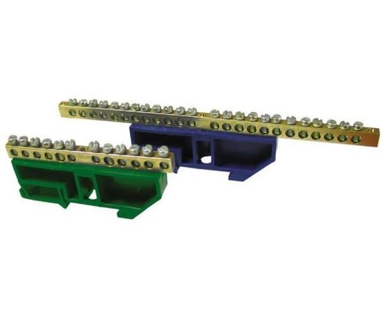 Название 1-2.Sale: EKF Шина N "Ноль" (нул.) 6х9мм 12 отв. (с изолятором на DIN-рейку, латунь) sn0-63-12-d