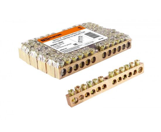 Универсальная шина нулевая "N" 6 мм х 9 мм SQ0801-0301, торговой марки TDM, применяется для быстрого соединения нулевых рабочих (N) и нулевых защитных (РЕ) кабелей с т
