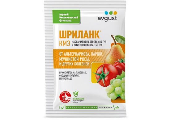 Шриланк (дифеноконазол 30 г/л + масло чайного дерева 400 г/л) - это первый в России уникальный гибридный фунгицид для защиты плодовых и овощных культур.