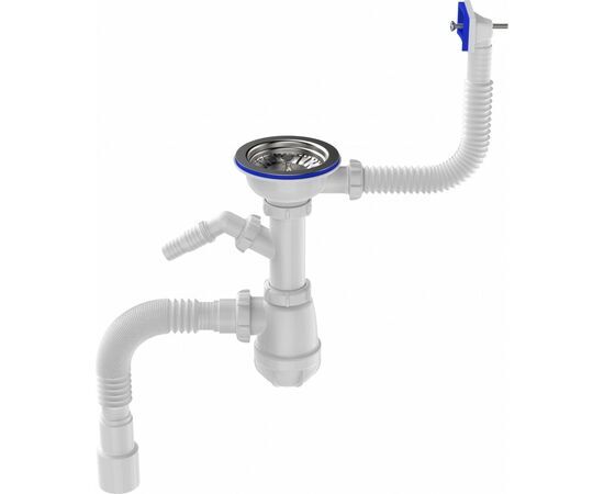 Сифон для кухонных моек с диаметром сливного отверстия 90 мм и решеткой 115 мм, в комплекте с прямоугольным переливом и универсальной