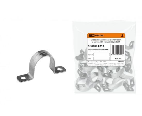 Название 1-2.Sale: TDM скоба метал. оцинк. сталь 2-х лапковая d 14-15мм (100шт/уп.,цена/шт) (100!) SQ0409-00