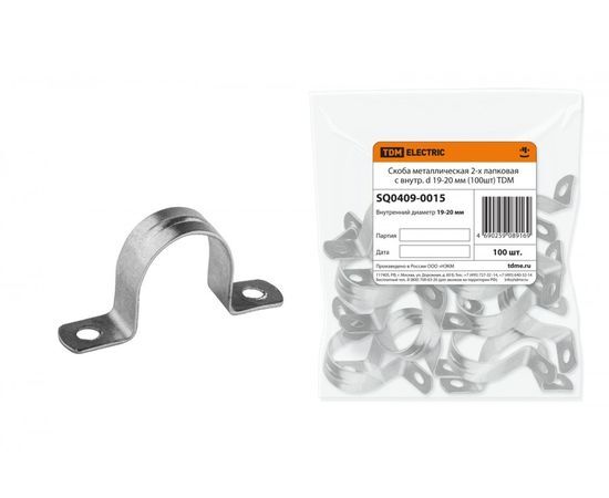 Название 1-2.Sale: TDM скоба метал. оцинк. сталь 2-х лапковая d 19-20мм (100шт/уп.,цена/шт) (100!) SQ0409-00