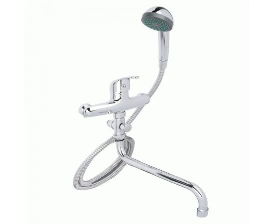Смеситель для ванны с душем. Излив S-образной формы длиной 40 см - подходит для широких и угловых ванн. Однорычажный: удобно регулиров