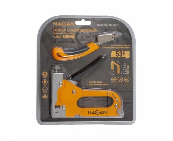 Название 1-2.Sale: NAGAN Степлер строительный Тип 53/ 4-14мм,скобы 8мм*400шт,металл,регул удара в комплекте антистеплер