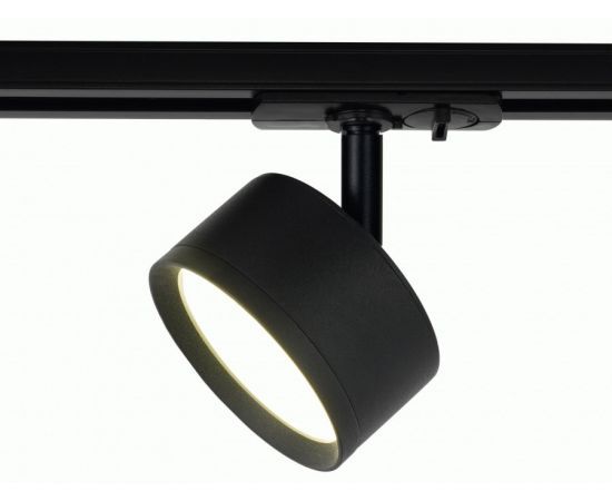 Светильник для трека однофазный в металлическом корпусе черного цвета с возможностью передвижения по шинопроводу. Оснащен поворотным механиз