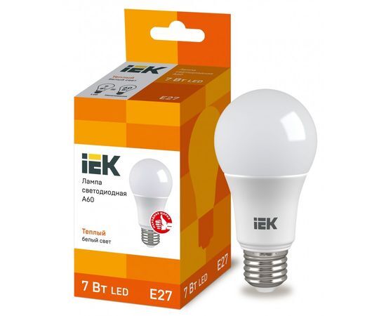 Название 1-2.Sale: IEK лампа св/д ЛОН A60 E27 7W(700lm) 3000K 2K 112x60 матовая LLE-A60-7-230-30-E27