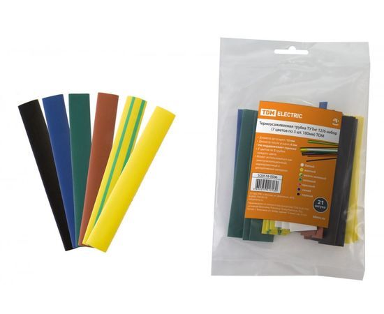 Название 1-2.Sale: TDM ТУТнг 12/6 термоусаживаемая трубка набор, цена за набор (7цв по 3шт 100мм) (10!) SQ0518-0506