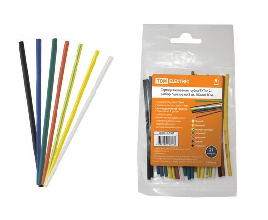 Название 1-2.Sale: TDM ТУТнг 2/1 термоусаживаемая трубка набор, цена за набор (7цв по 3шт 100мм) (10!) SQ0518-0501