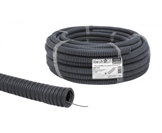 Название 1-2.Sale: TDM РЭМЗ труба гофр. ПВХ d25 с зондом 50м темно-серая легкая (цена за 1м) Народная (50) SQ0401-0303