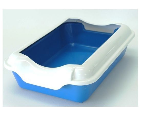 Туалет для кошек с бортиком без сетки 37*27*11,5см, бортик в комплекте, синий, HOMECAT
