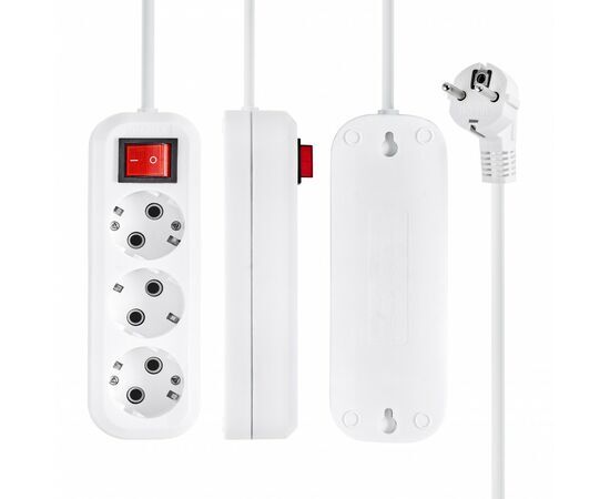 Удлинитель электрический У03B 3 места 2P+PE/5м ПВС 3x1мм2 16А/250В белый с выключателем PLEXUP EUP33-16-03-05 С выключателем С заземлением 3 ме
