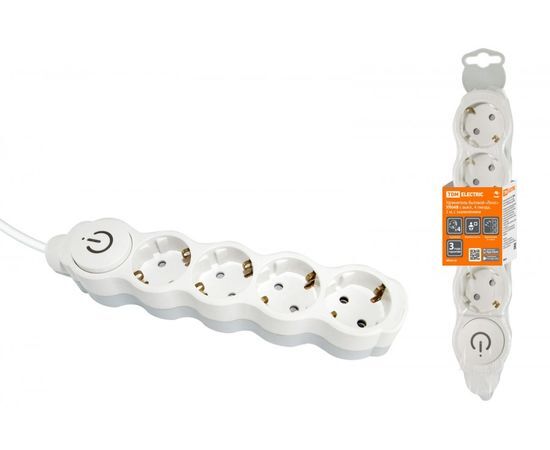 Название 1-2.Sale: TDM Люкс сет. удлинитель ПВС 3х1 УЛ04В 4роз. 3м земля, выкл, шторки 16А бел-сер SQ1303-0134