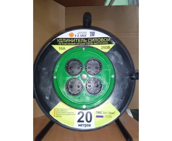 Название 1-2.Sale: 1-2.SALE силовой удлинитель на пласт. катуш. ПВС 2х1.5 4роз. 20м 16А УХ16 cz765511