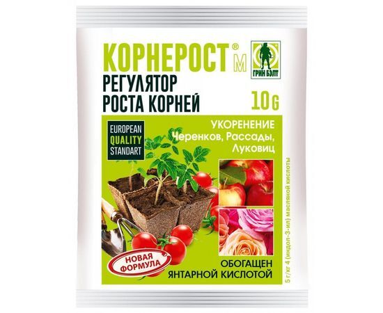 Корнерост-М — это мощное средство для садоводов и огородников, содержащее 4 (индол-3-ил) масляную кислоту в концентрации 5 г/кг. Его прим