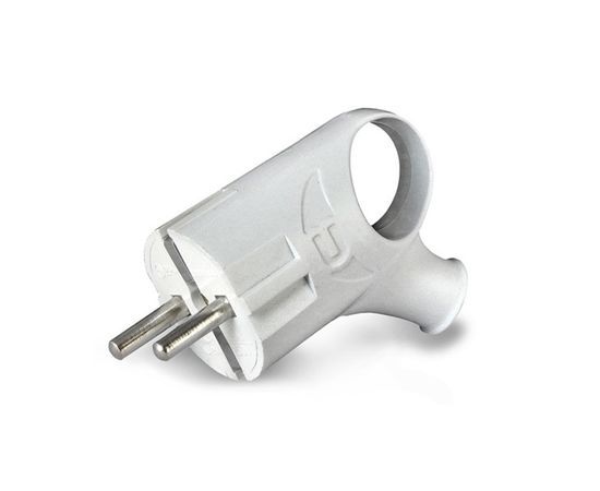 Угловая вилка с ушком, с заземлением, белая 16А 250В UNIVersal А112 служит для присоединения разнообразных приборов бытового класса к сети переменного тока до 2