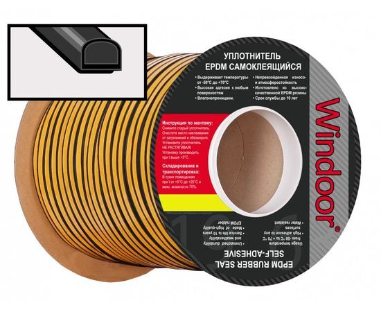Название 1-2.Sale: Уплотнитель D-профиль 9*7,5мм Windoor 100м (2*50м) бел. резиновый самокл.