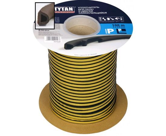 Название 1-2.Sale: Уплотнитель D-профиль 9*7,5мм TYTAN (Титан) 100м (2*50м) коричн. резиновый самокл., арт.91416