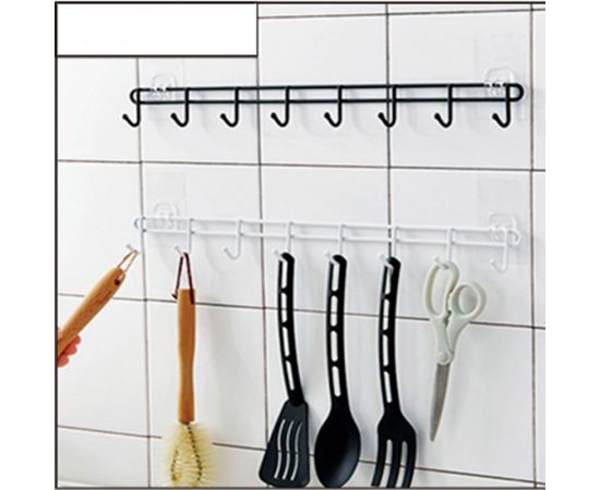 Вешалка для хранения кухонных аксессуаров: ложек, шумовок, ножниц, лопаток, кухонных полотенец и пр. 8 крючков. Крепится к стене при помощи 2х самоклеящихся крючков из прозрачн