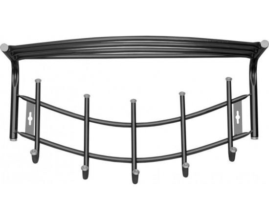 Название 1-2.Sale: Вешалка настенная 5 крючков с полкой (Д52,5*Ш30*В23,5см) металл, цвет черный, ВНП4/Ч Nika