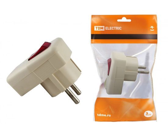 Название 1-2.Sale: TDM вилка 16А 250В (АБС-пластик, угловая, белая/бежевая, земля, выкл.) SQ1806-0009