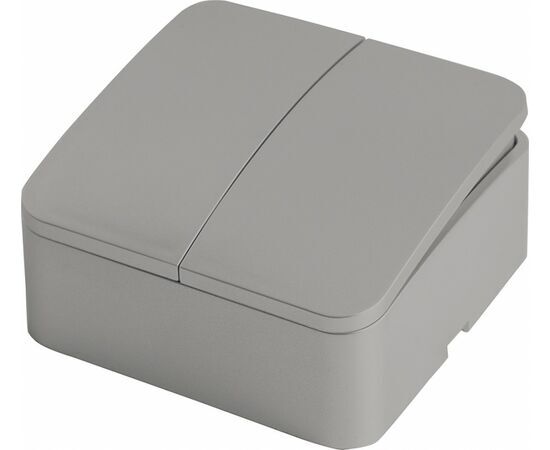 Выключатели двухклавишный STEKKER MSW10-20-03 !!4 ШТУКИ !!, серия София тип установки - открытый, размер изделия 65*65*35мм., цвет серебро, материал изделия ABS пласти
