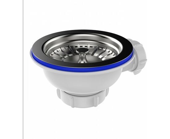 Выпуск 3 1/2" для кухонных моек с диаметром сливного отверстия 90-98 мм. Выпуск с разборной горловиной, с металлическими решетками 115 мм и ситечком 78 мм,