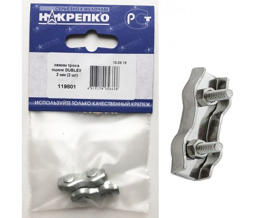 Название 1-2.Sale: Зажим троса оцинк DUBLEX 2 мм (2 шт BL) (цена за уп) НАКРЕПКО 119801
